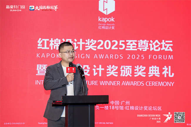 12月7日上午,“红棉设计奖2025至尊论坛暨室内设计颁奖典礼”活动现场,新豪轩门窗营销总经理晁岳亮作为品牌代表,以特约合作伙伴身份登台致辞,分享新豪轩门窗在推动家居设计与服务升级方面的实践与思考。同时作为颁奖嘉宾,品牌方代表给获奖设计师代表颁奖,诠释新豪轩与设计师深度协同、赋能美好生活的价值追求。同日下午,在“红棉设计奖2025至尊论坛暨产品设计奖颁奖典礼”上,新豪轩门窗更凭借精益求精的匠心精神与行业引领作用,荣获“红棉设计奖·2025工匠精神奖”,再次收获行业高度认可。