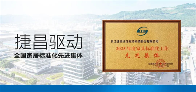 此次荣获“全国家具标准化先进集体”,既是对捷昌驱动长期以来积极参与行业标准化建设、履行企业社会责任的认可,也体现了其在技术引领与产业协同方面的行业影响力。未来,捷昌驱动将继续发挥在智能驱动与家具融合创新方面的优势,携手企业伙伴、行业机构,共同构建更加科学、先进、适用的家具标准体系,以高标准助力家具行业高质量发展,为美好人居生活创造更多价值。