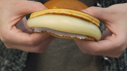 它可以是甜的芋头泥,夹在铜锣里,压住,变成了芋泥云: